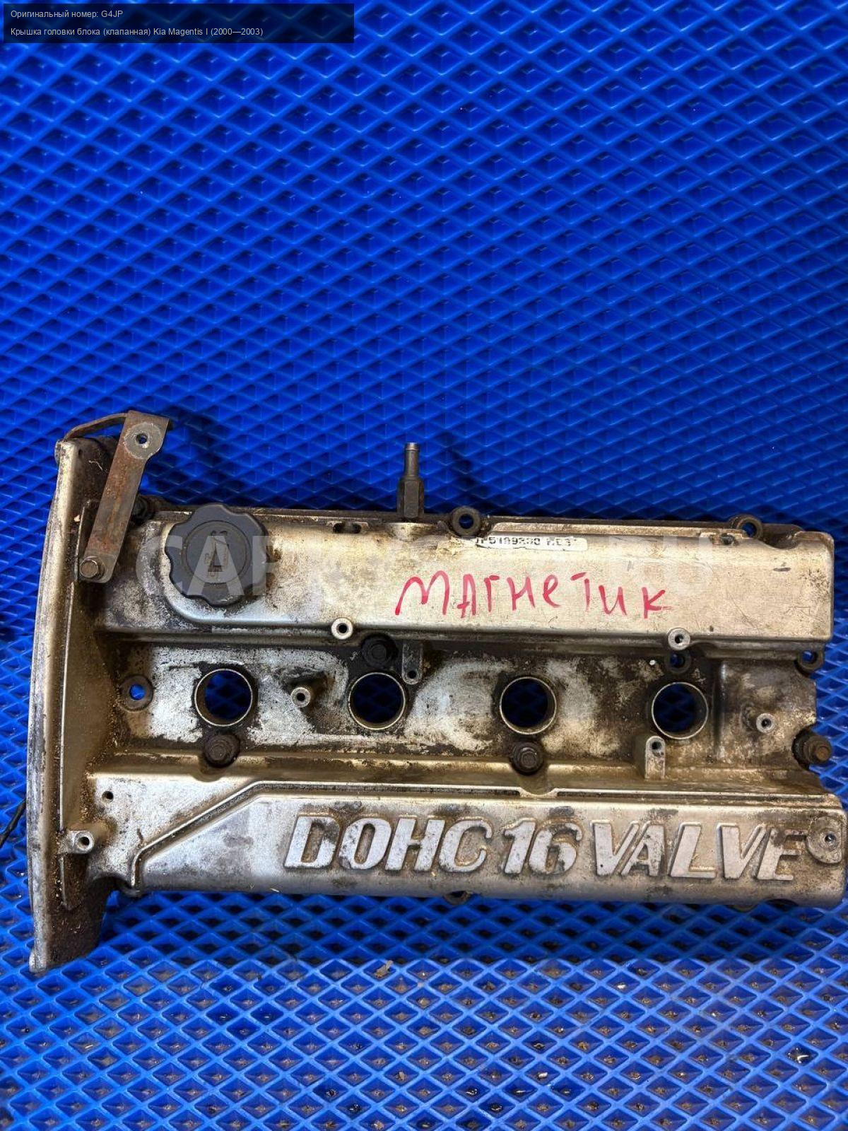 Kia Magentis, клапанная крышка G4JP.\nАртикул: 10004\n\nОриг. номер: G4JP\nПроизводитель: Hyundai-KIA\nПримечание:Киа Маджентис, клапанная крышка G4JP, б/у. \n\nМарка: Kia\nМодель: Magentis I (2000—2003)\nСовместимости: Kia Magentis I (2000—2003)\nСовместимость: