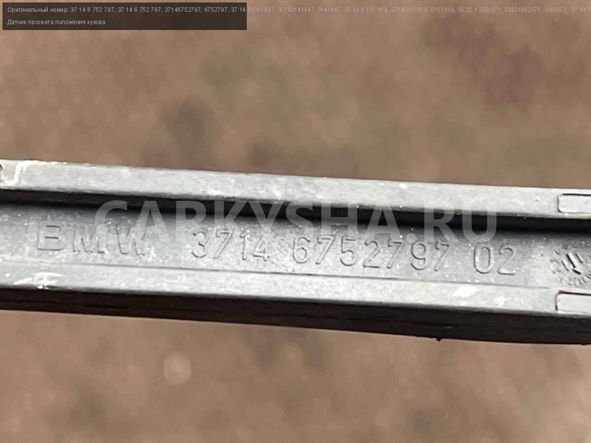 Датчик положения кузова БМВ ф07 ф10 ф11 ф18 ф06 ф12 ф13 ф01 ф02 ф03 ф04.\nДатчик клиренса просвета.\nДатчик уровня пола сзади слева.\n\nЗапчасть снята с японского распила BMW. \nОригинал. \nБез пробега по РФ.