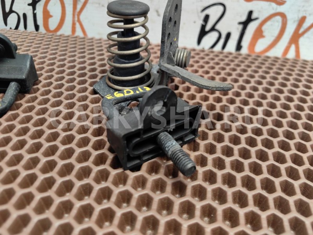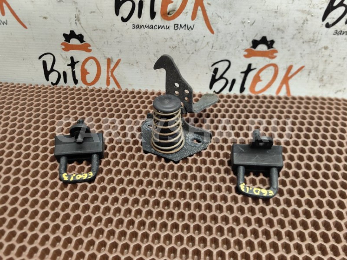 Комплект обратных частей замков капота БМВ е60 е61 е63 е64 х3 е83\nОдин пластик скобы имеет дефект-см.фото.\n\nХорошее состояние. Запчасть снята с японского распила BMW. Оригинал. Без пробега по РФ.