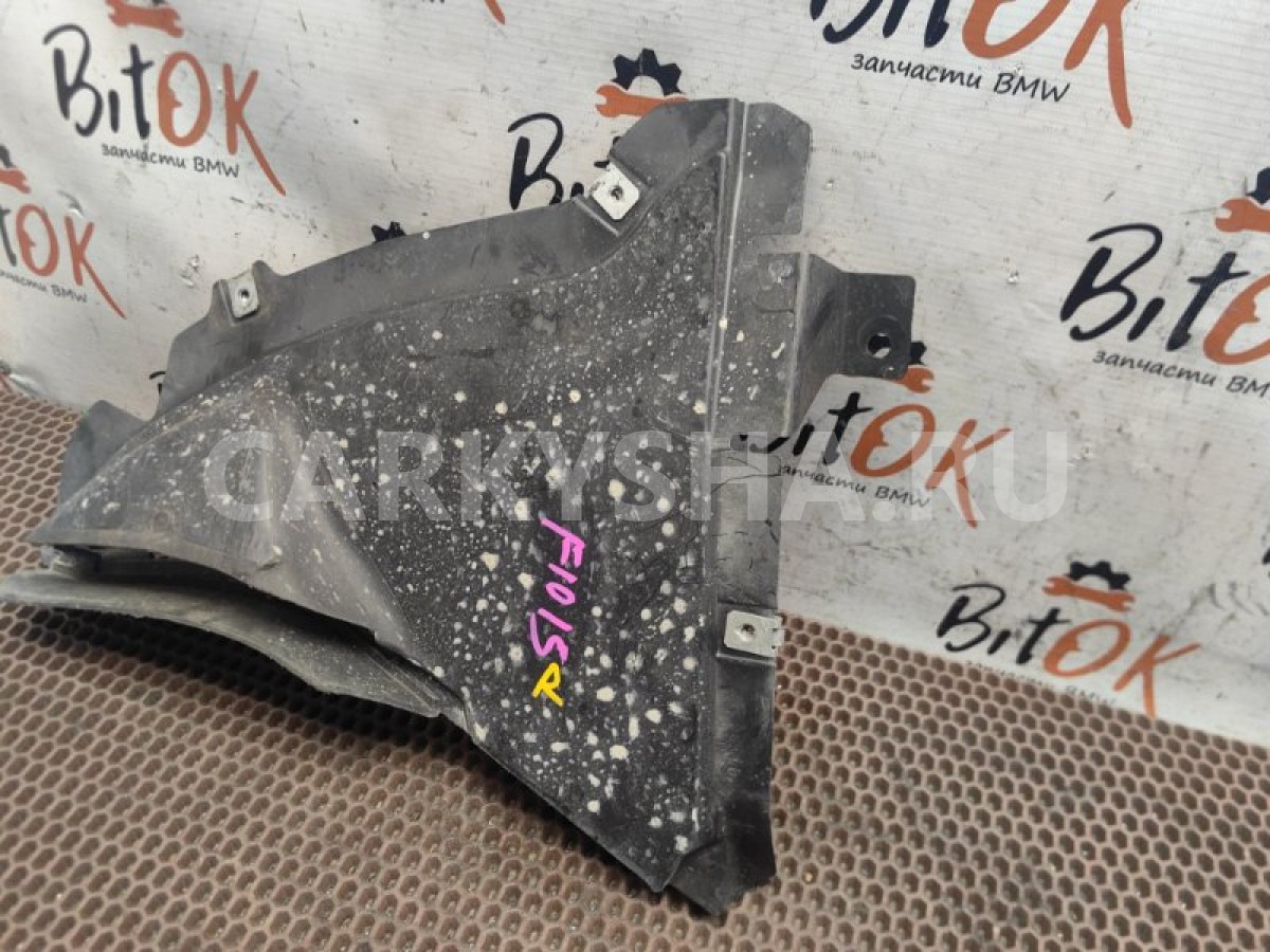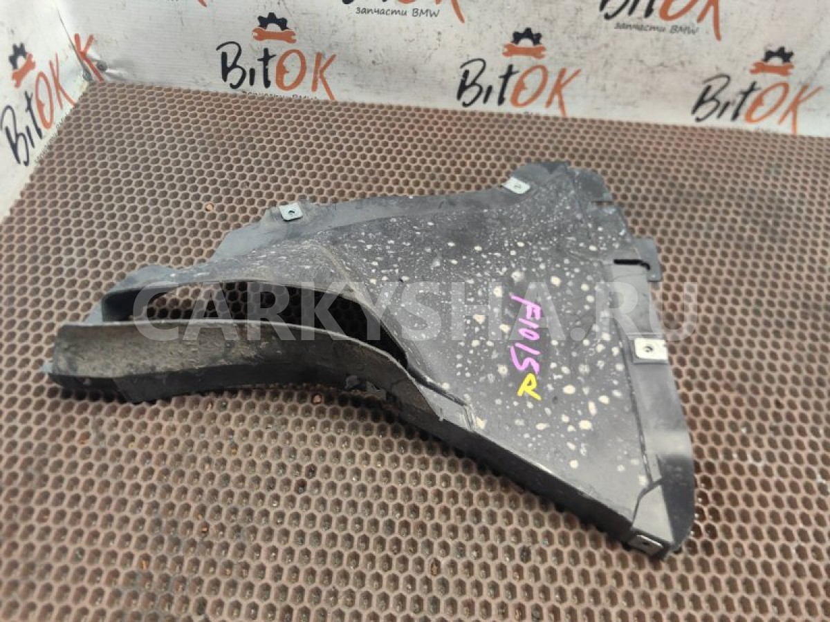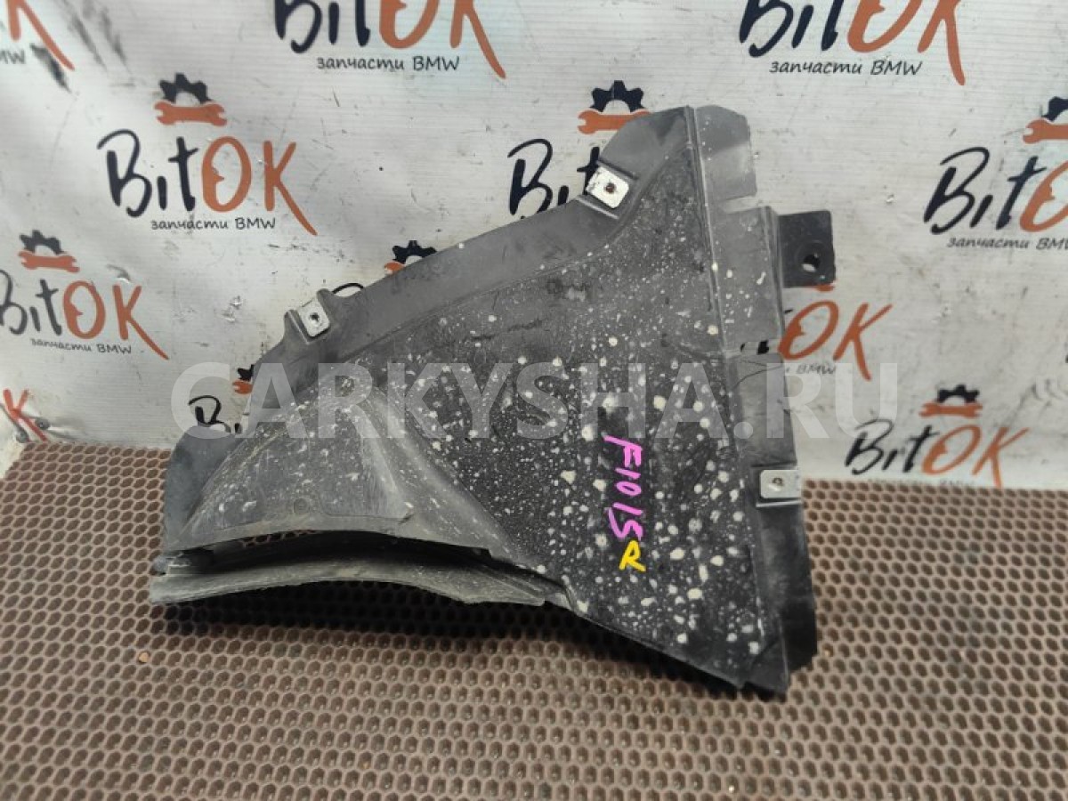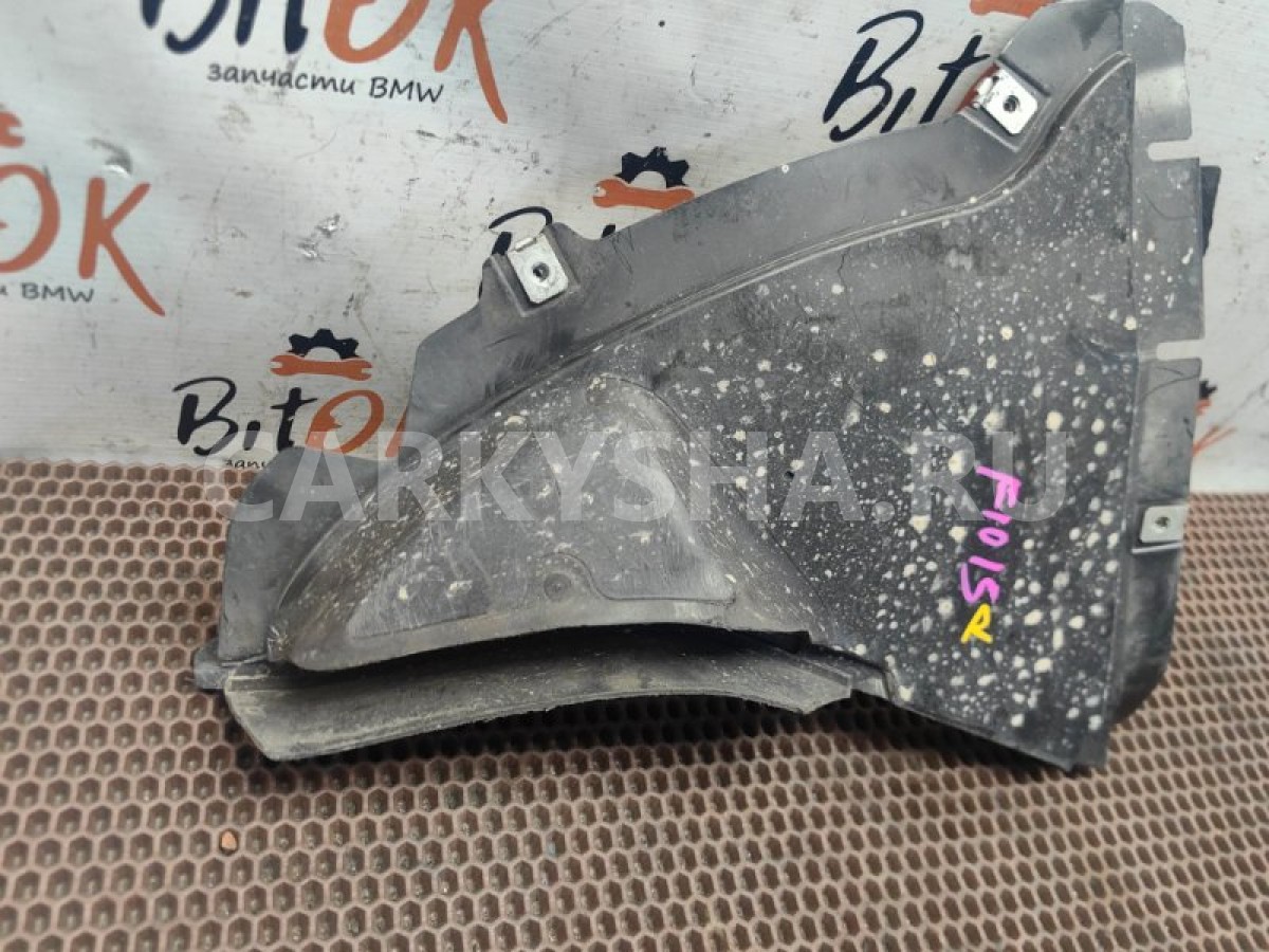 Локер щиток подкрылок нижний с правой стороны переднего стандартного бампера БМВ ф10 ф11 ф18\n\nЩеток бампера справа.\n\nИмеется трещина - см.фото.\n\nЗапчасть снята с японского распила BMW. Оригинал. Без пробега по РФ.