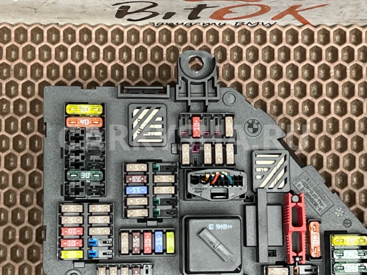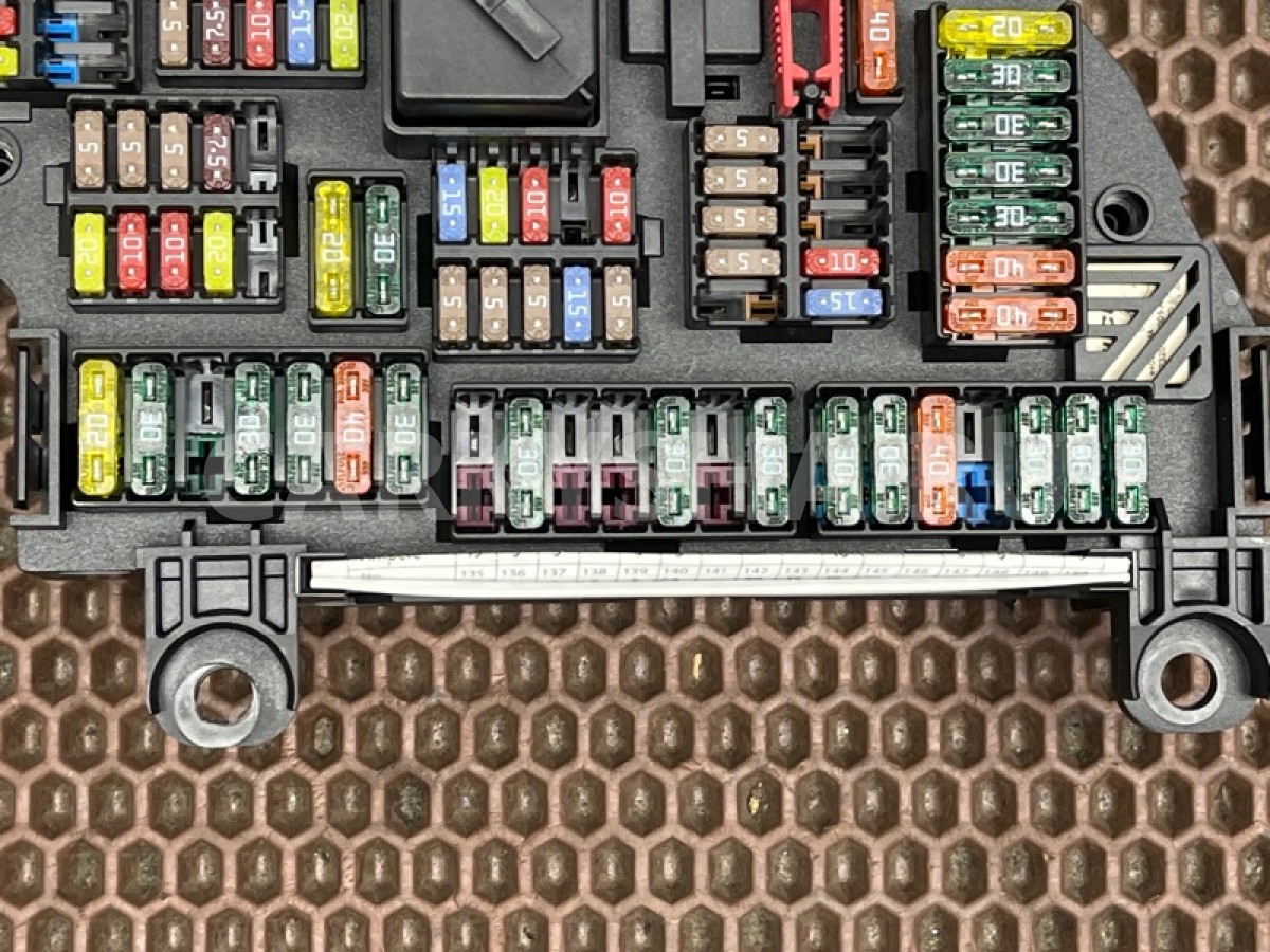 Блок предохранителей в багажнике со схемой БМВ ф07 ф10 ф11 ф18 ф06 ф12 ф13 ф01 ф02 ф03 ф04.\n\nЗапчасть снята с японского распила BMW. \nОригинал. \nБез пробега по РФ.