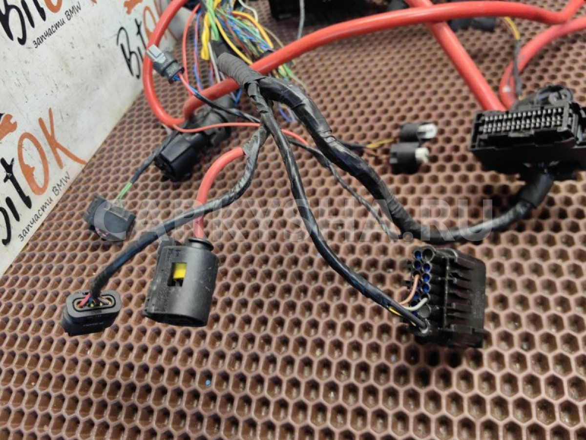 Проводка по полке крыла, лонжерону левому от моторного щита до переднего бампера.\nВключает в себя разъем помощника парковки, фары, бампера, силовые провода и прочее.\n\nХорошее состояние. Запчасть снята с японского распила BMW. Оригинал. Без пробега по РФ.
