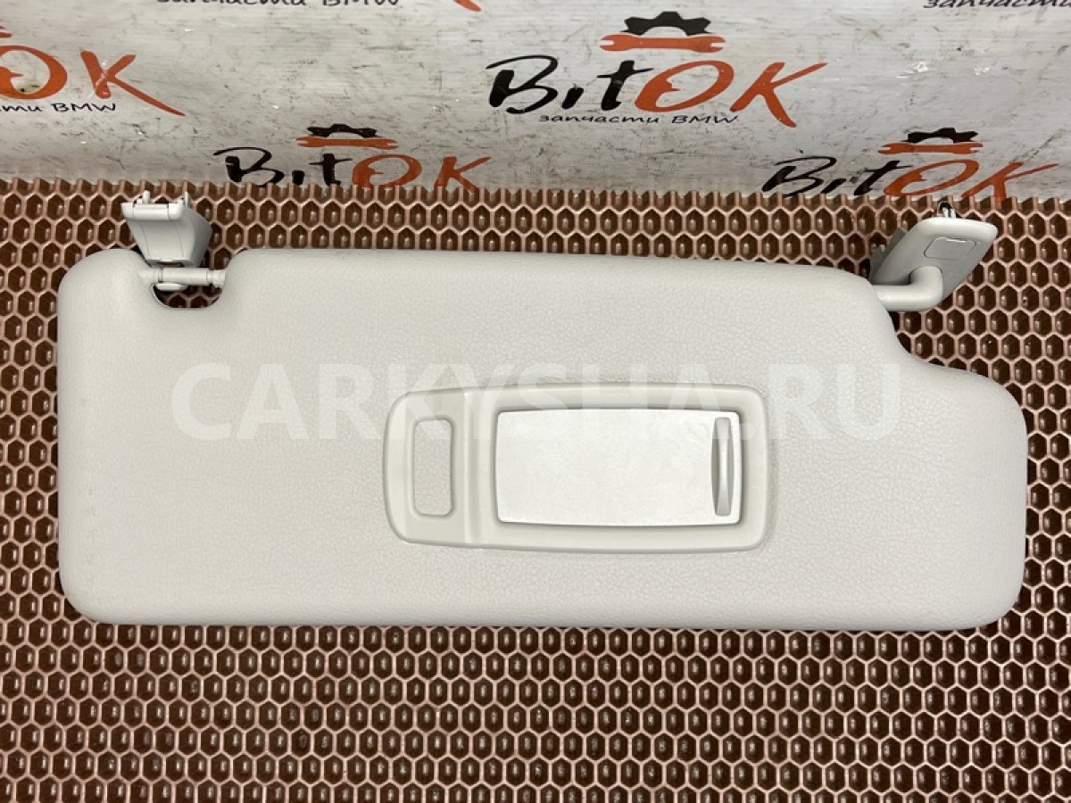Козырек солнцезащитный правый серый с крючком контропорой БМВ х1 ф48.\nЗеркало с концевиком для подсветки.\n\nЗапчасть снята с японского распила BMW. \nОригинал. \nБез пробега по РФ.