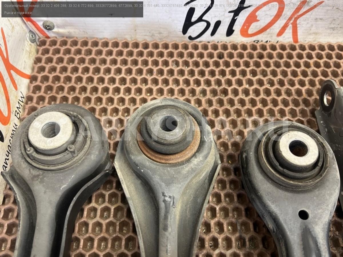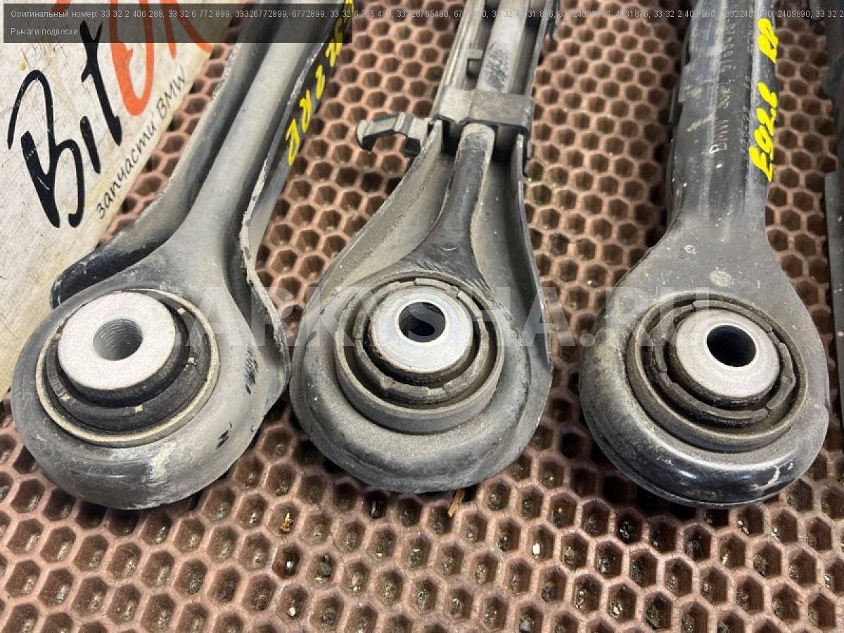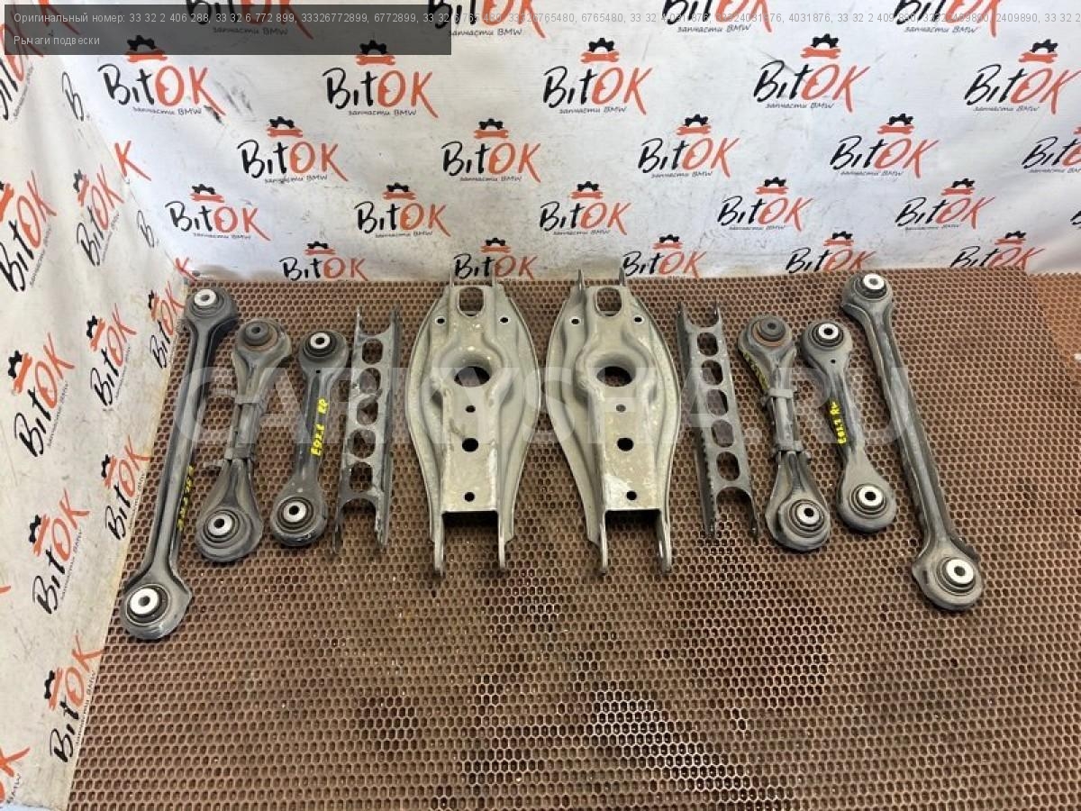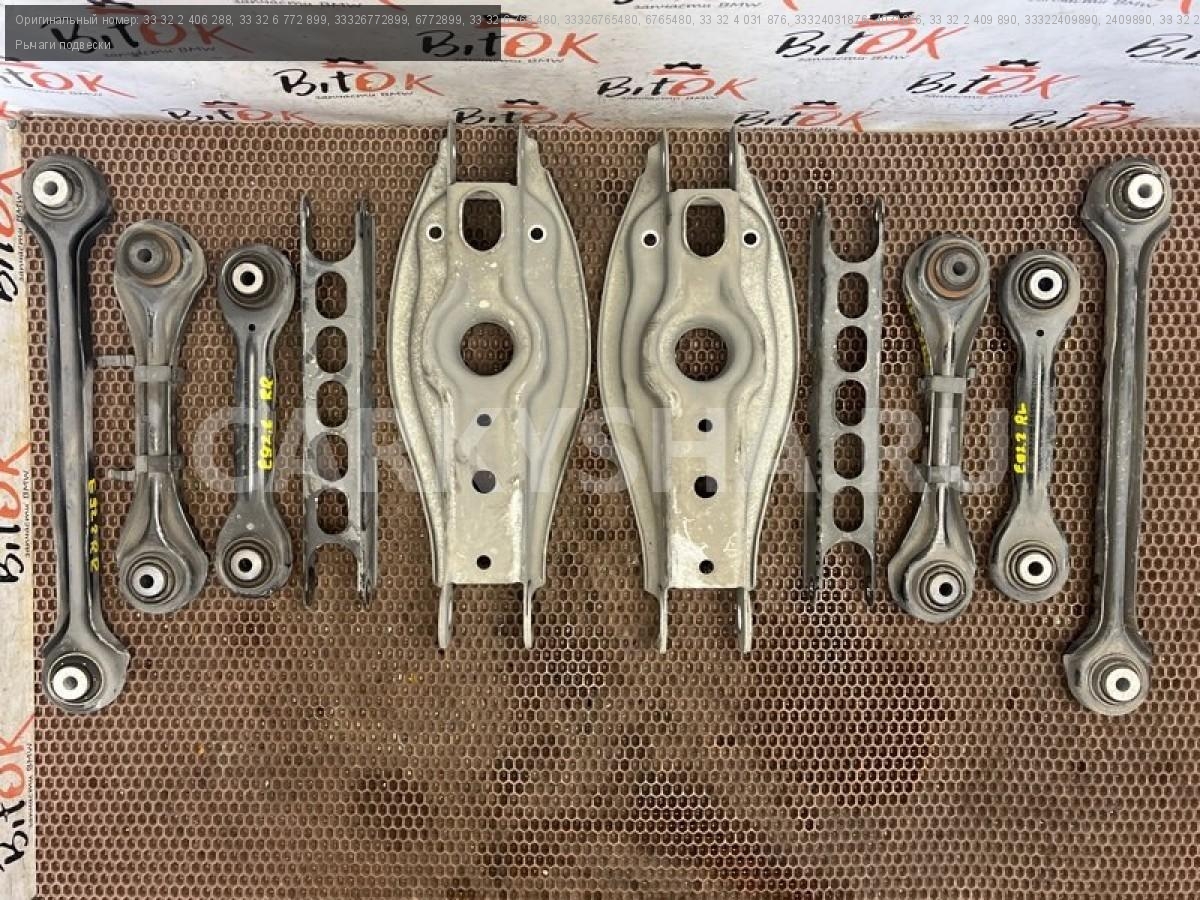 Рычаги задней подвески БМВ е81 е82 е87 е88 е90 е91 е92 е93.\nРычаги контроля развала с р/м шарнирами.\nРычаги контроля схождения с р/м шарнирами.\nПродольные рычаги подвески.\nНаправляющие рычаги с резиномет. шарнирами.\nПоперечные рычаги подвески с резиномет. шарнирами.\nСтойки заднего стабилизатора.\nЦена за весь комплект, продажа комплектом.\n\nЗапчасть снята с японского распила BMW. \nОригинал.\nБез пробега по РФ.
