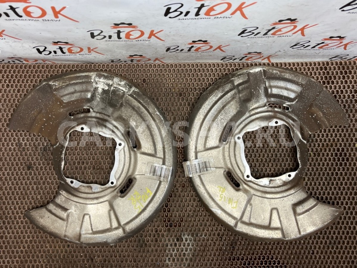 Защитные щитки кожухи задних тормозных дисков БМВ ф10 ф11 ф18 ф06 ф12 ф13.\nМеста креплений щитка к кулаку без коррозии.\nПродажа парой, цена за оба.\n\nЗапчасть снята с японского распила BMW. \nОригинал. \nБез пробега по РФ.