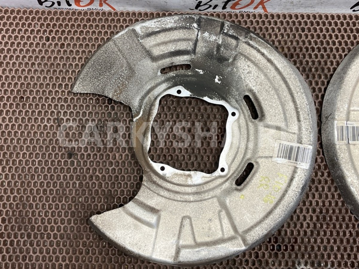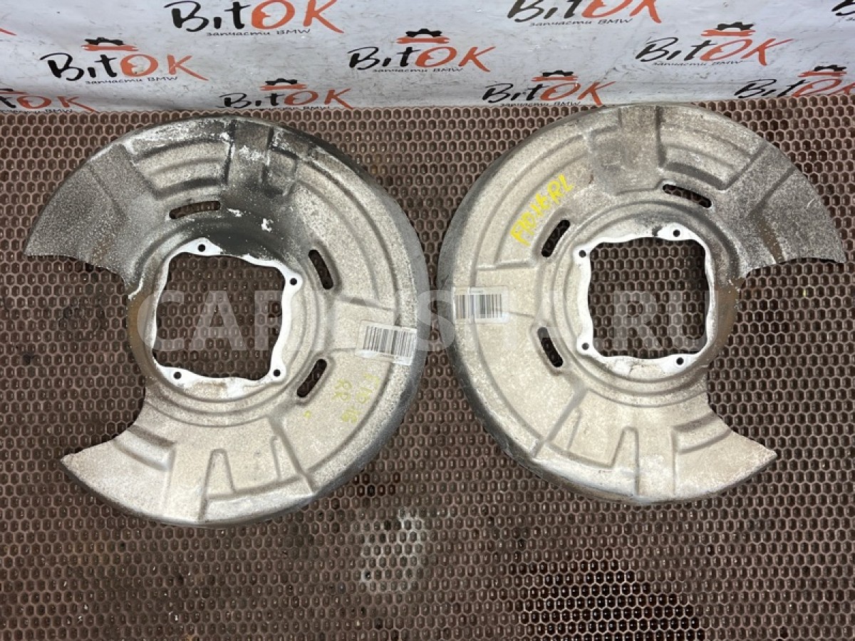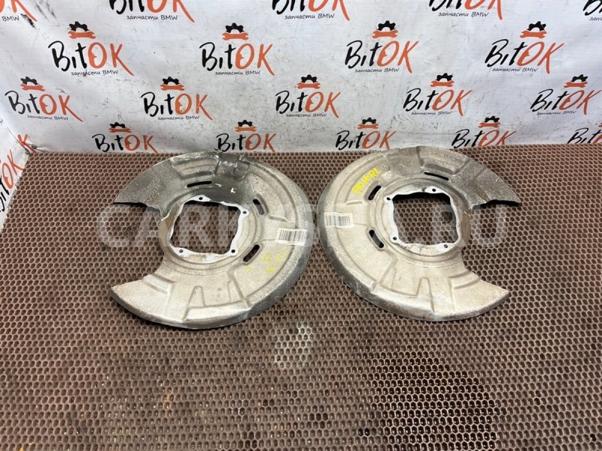 Защитные щитки кожухи задних тормозных дисков БМВ ф10 ф11 ф18 ф06 ф12 ф13.\nМеста креплений щитка к кулаку без коррозии.\nПродажа парой, цена за оба.\n\nЗапчасть снята с японского распила BMW. \nОригинал. \nБез пробега по РФ.