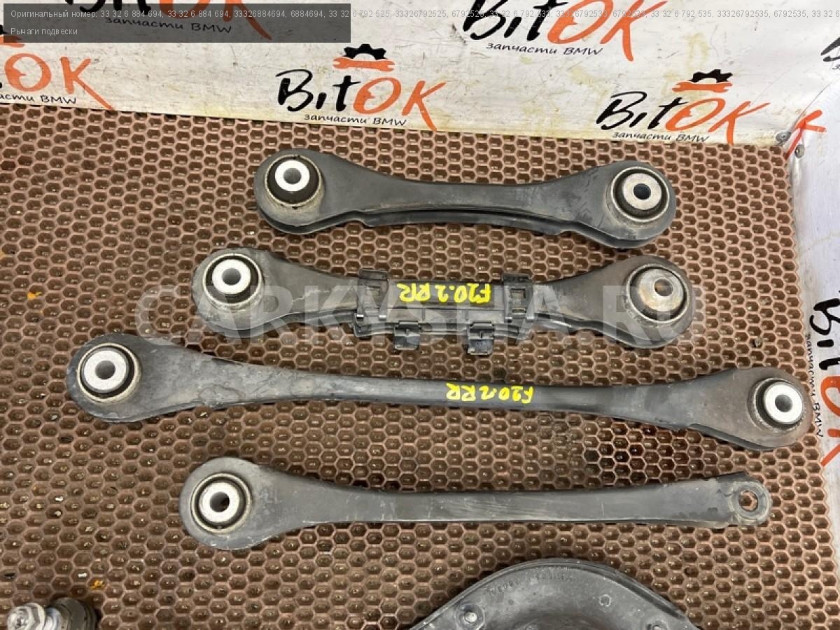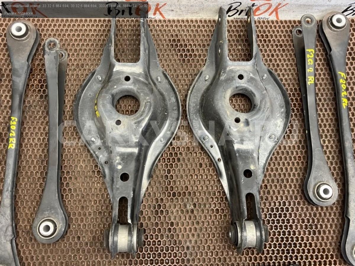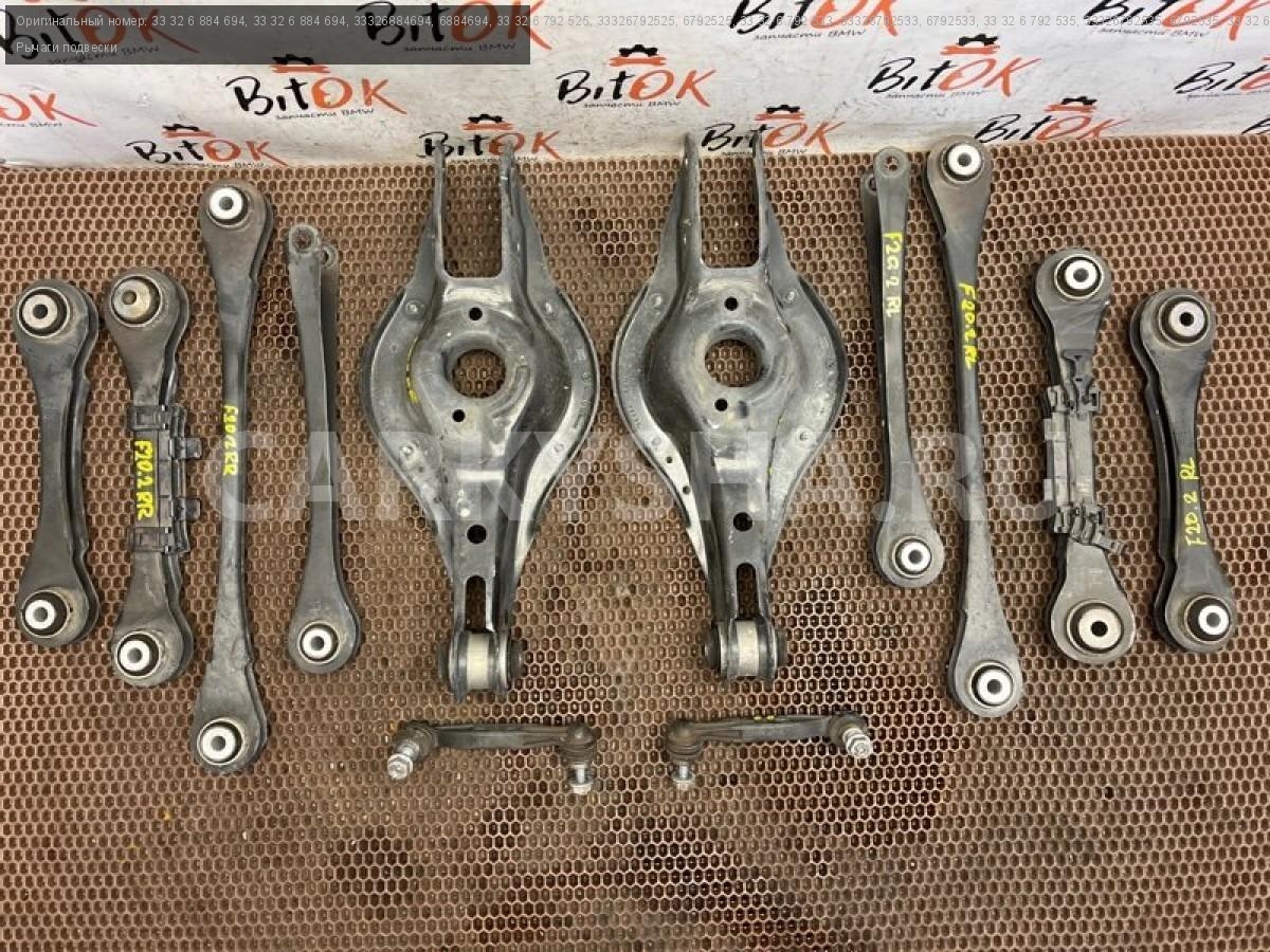 Рычаги задней подвески БМВ ф20 ф21 ф22 ф23 ф30 ф31 ф34 ф35 ф32 ф33 ф36.\nРычаги контроля развала с р/м шарнирами.\nРычаги контроля схождения с р/м шарнирами.\nПродольные рычаги подвески с р/с шарнирами.\nНаправляющие рычаги с резиномет. шарнирами.\nПоперечные рычаги подвески с резиномет. шарнирами.\nСтойки заднего стабилизатора.\nЦена за весь комплект, продажа комплектом.\n\nЗапчасть снята с японского распила BMW. \nОригинал. \nБез пробега по РФ.